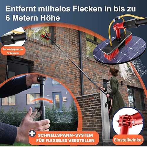 Lave Vitre Telescopique, Grande TêTe De Brosse Rotative Perche Nettoyage Toiture, Balai Telescopique, Kit Nettoyage Panneaux Solaires Pour Nettoyer Vitres
