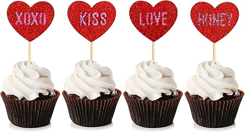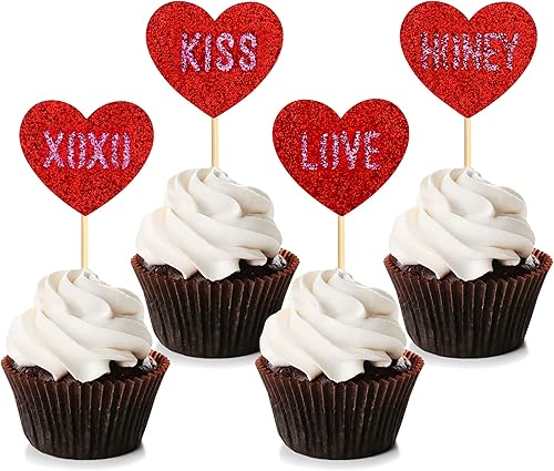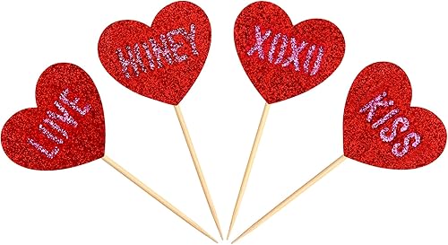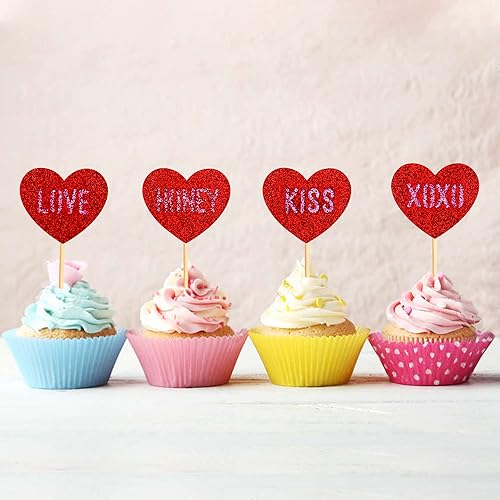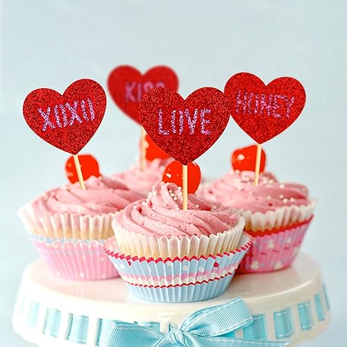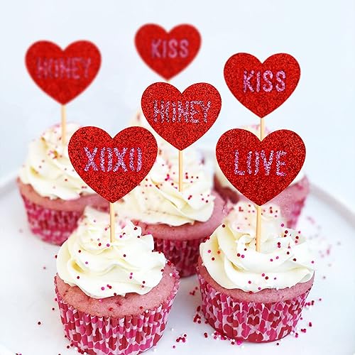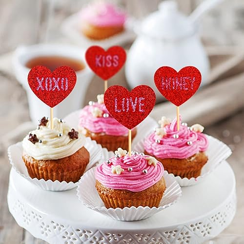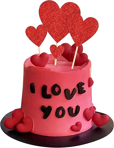 Blumomon Lot de 35 décorations de gâteau en forme de cœur rouge pailleté pour la Saint-Valentin, fête de mariage, fête prénuptiale