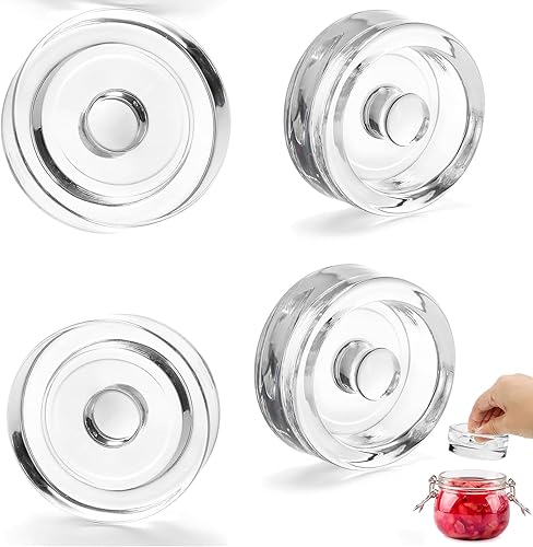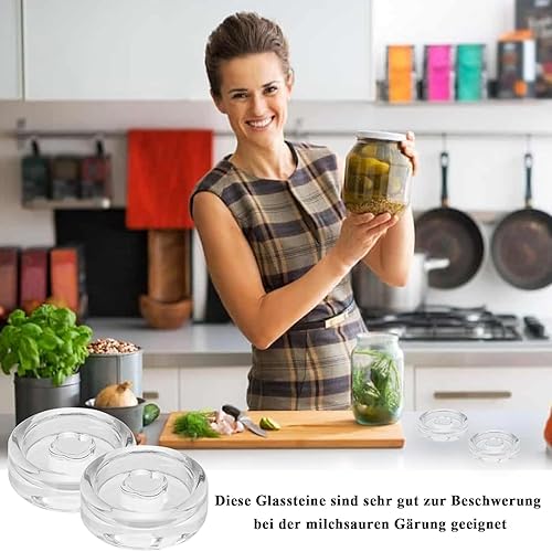 Lot de 4 poids de fermentation en verre de fermentation, poids en verre d'un diamètre de 7 cm, poids de fermentation avec poignée, poids en verre pour fermentation avec large ouverture, pour la mise