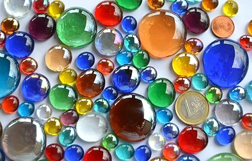 Pépites de verre multicolores 176 g en 3 différentestailles - 1-3 cm - Environ 66 pierres mosaïques de décoration