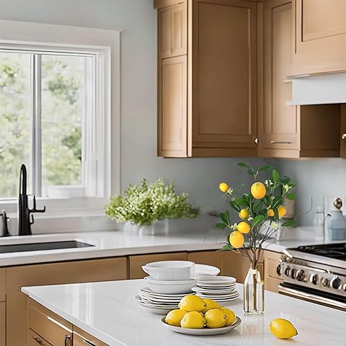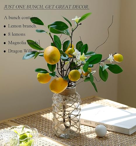 Laelfe 2Pcs Branches de Citrons Artificielles, Bouquet de 16 Têtes de Citrons Jaunes Faux, Branches de Citron Artificiels pour Cuisine, Salle à Manger, Chambre à Coucher, Table (18.9in)