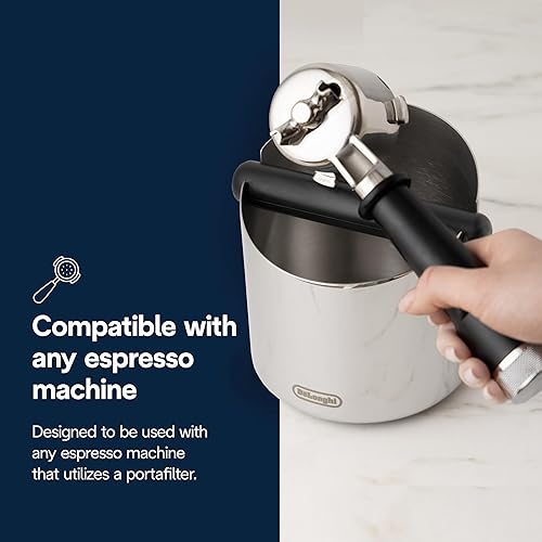 De'Longhi Boîte à Café DLSC072, Collecte Les Marc de Café, Acier Inoxydable, Base en Caoutchouc Antidérapante, Corps Solide et Stable, Facile à Nettoyer