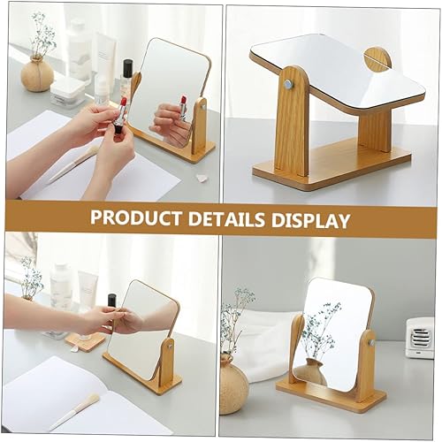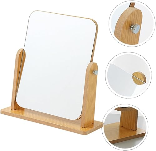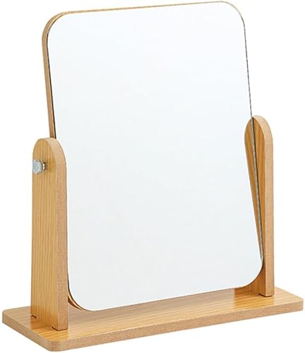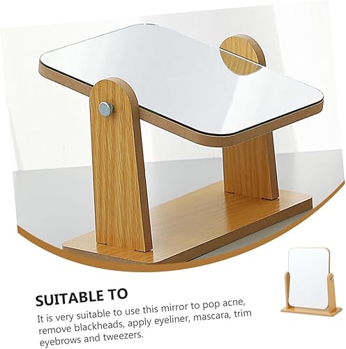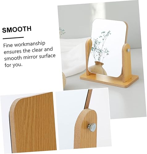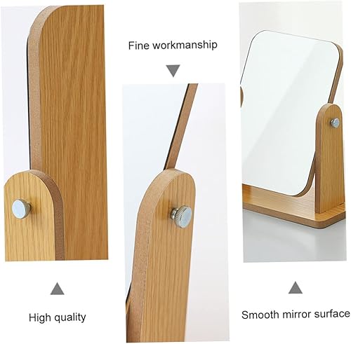 VALICLUD Miroir De Rotatif Salle De Bains Se Maquiller Miroir avec Support Rester Pivot Vrai Plaque Tournante Vanité Portative Miroir De Maquillage Miroir De Coiffeuse en Bois