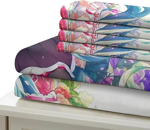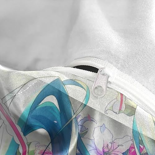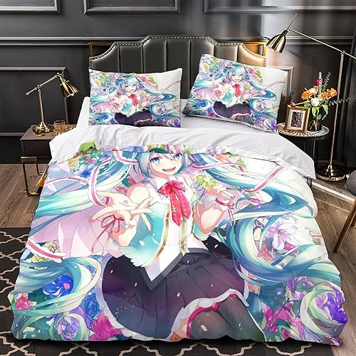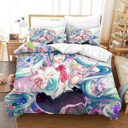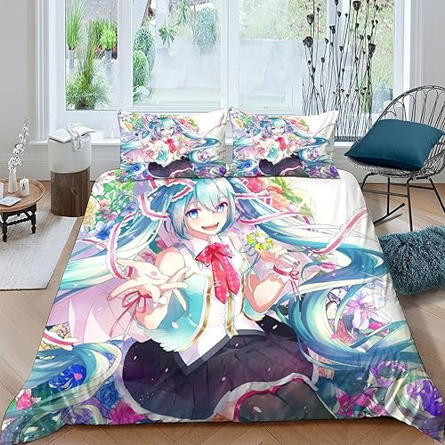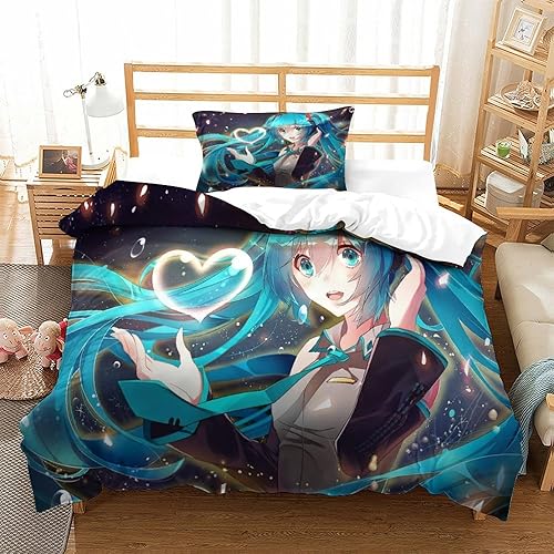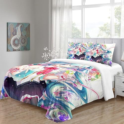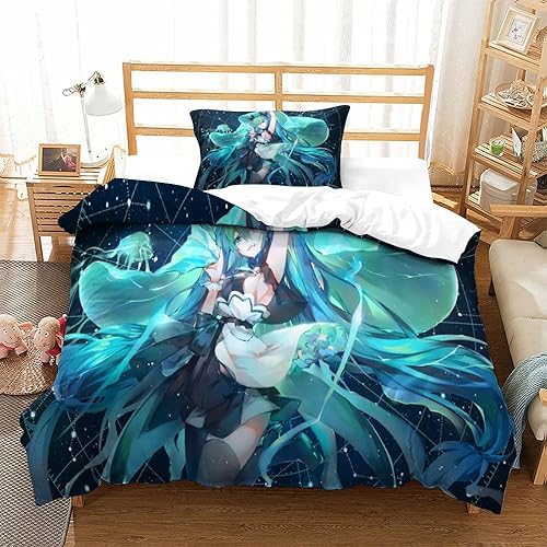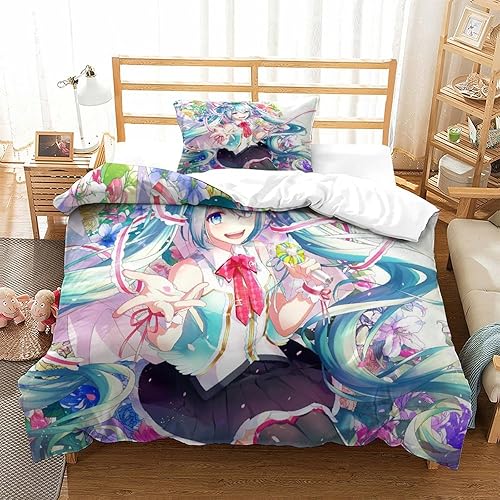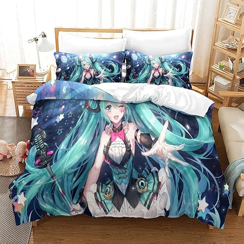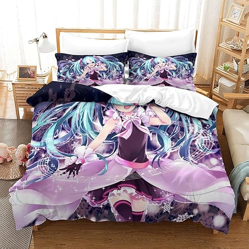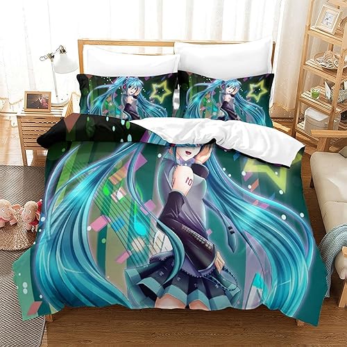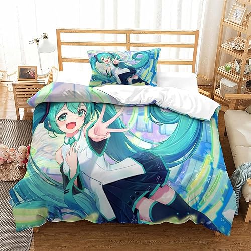 PXBDUASIE Imprimé 3D Hatsune Miku Ensemble De Literie avec Microfibre Super Douce Et Respirante Sets De Housses De Couettes 3 Pièces avec Taies d'oreiller Single(140x200cm)