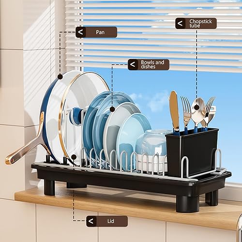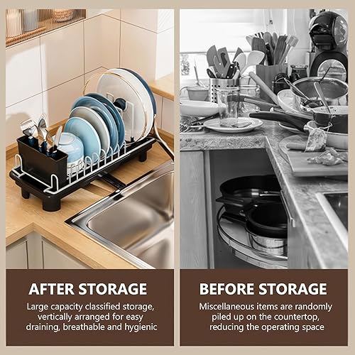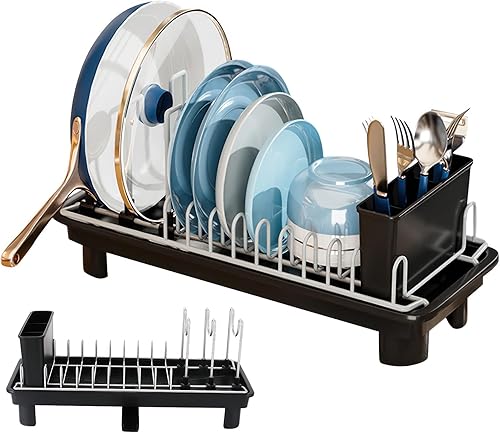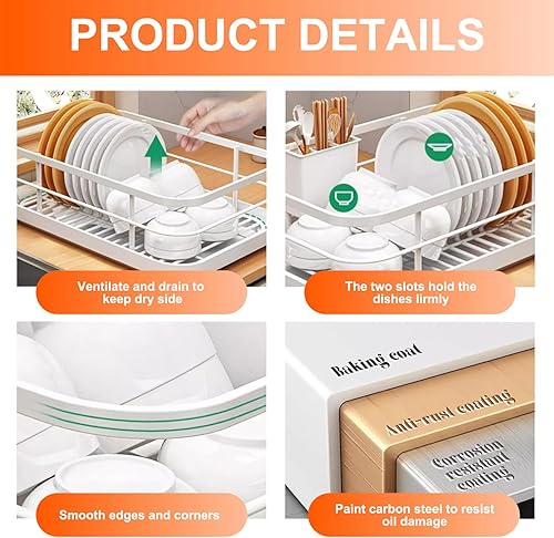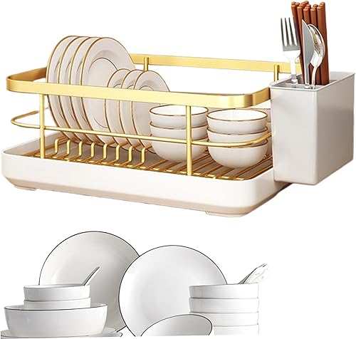 TANGPINGMAO Égouttoir à Vaisselle en Acier au Carbone avec Porte-Couverts, Fournitures de Cuisine