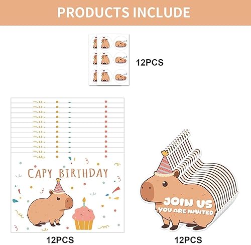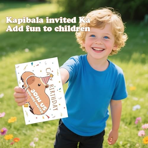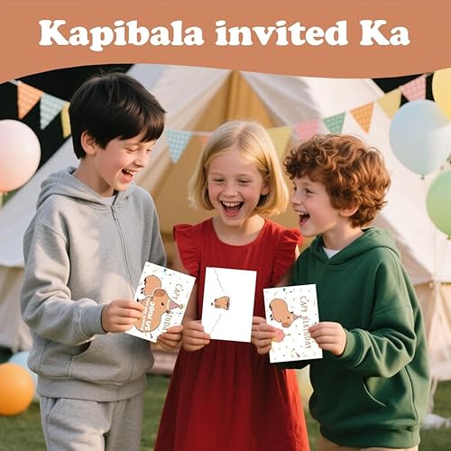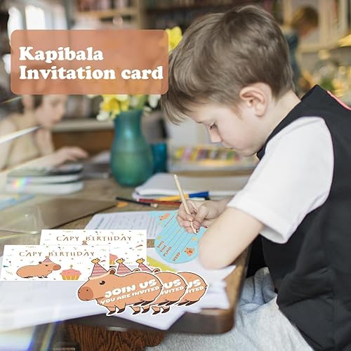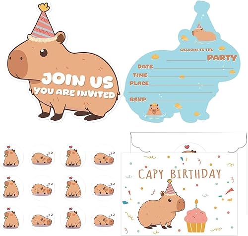 CYGMRFH Capybara Invitations d'anniversaire Capybara - Cartes d'invitation pour anniversaire d'enfant - Avec enveloppes et autocollants - Motif animal spa - Design 12