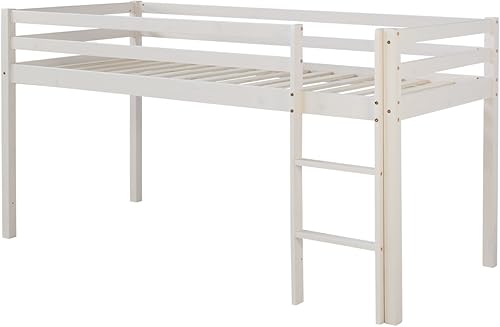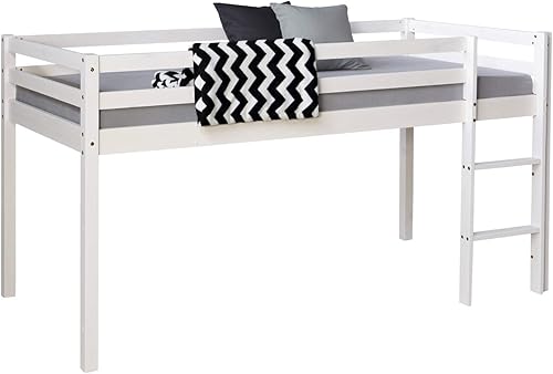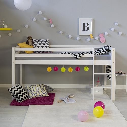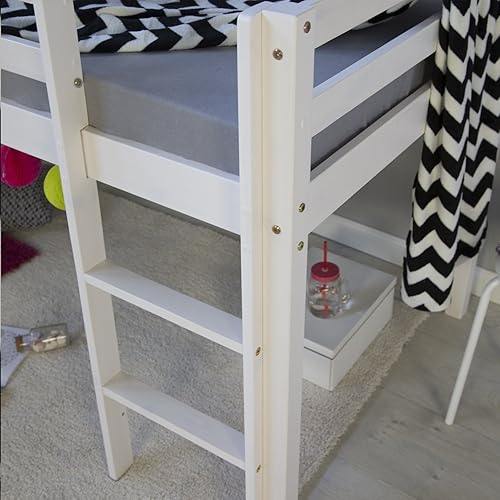 Homestyle4u Lit Mezzanine Enfant 90x200 cm Blanc avec échelle | lit d'enfant de Bois pin Massif sans sommier | lit superposé d'enfants
