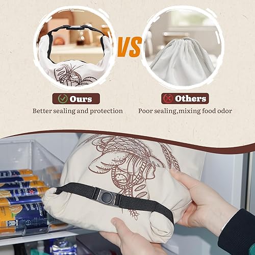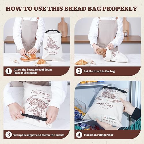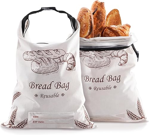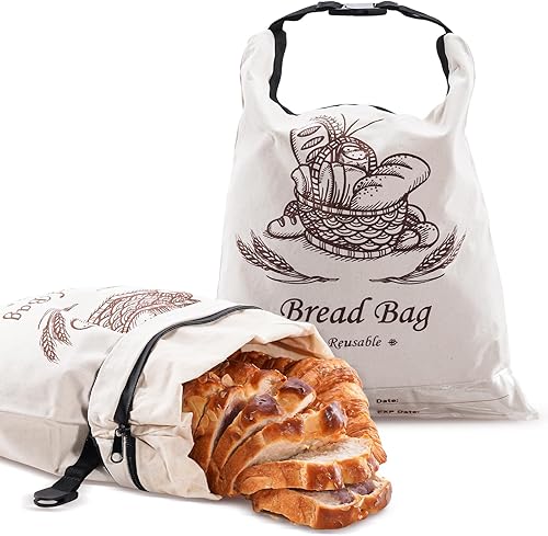 Puricon 2 Sacs à Pain Réutilisables en Cire d'Abeille avec Zippé pour Pain Fait Maison 31.5 * 42cm, Sachets Conservation de Pain au Levain de Grande Capacité avec Étiquette de Suivi de la Date