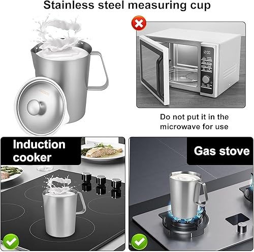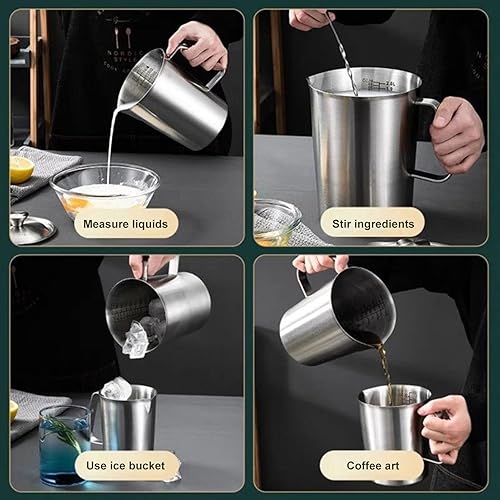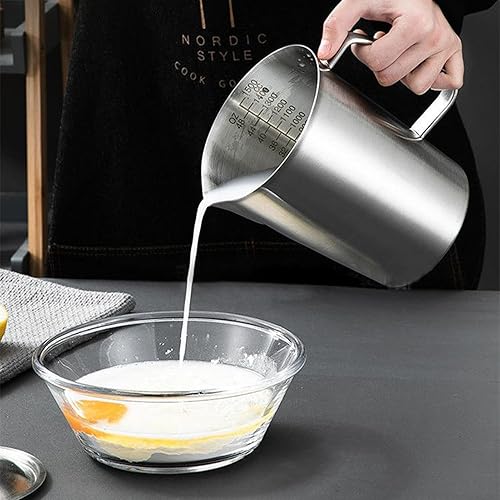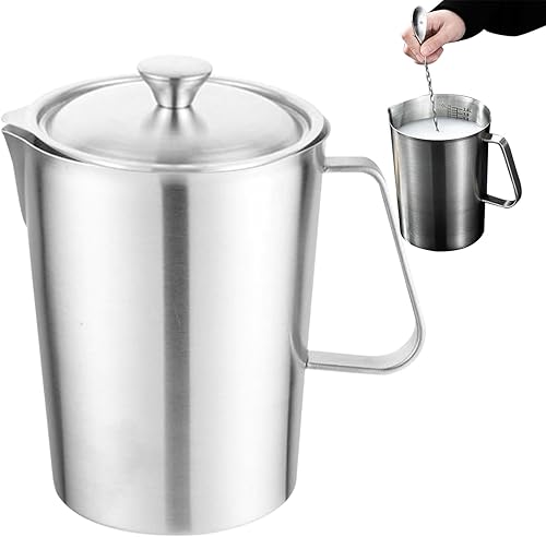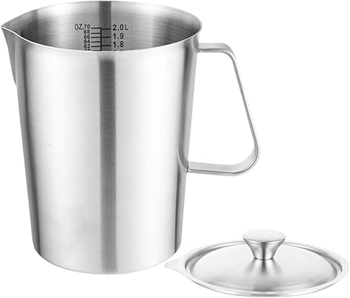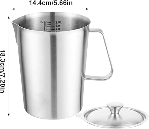 Tasse à mesurer, cruche à lait en acier inoxydable 2L avec marque de mesure et couvercle, cruche à café en métal, 18,3x14,4 cm, facile à utiliser, portable pour les cuisines à domicile