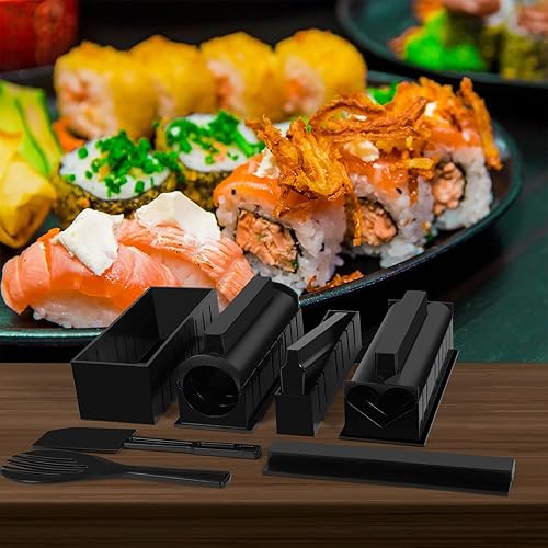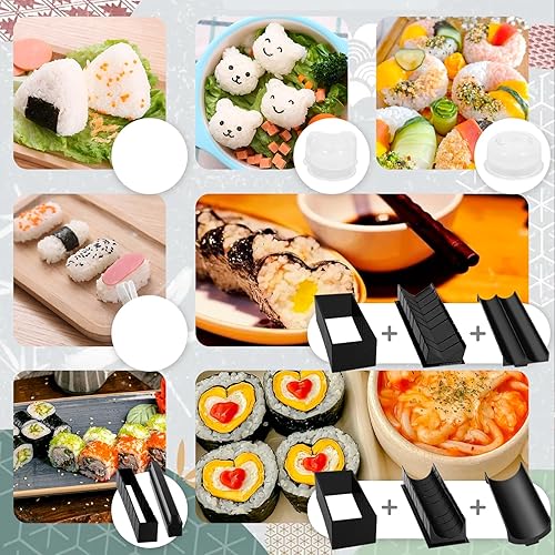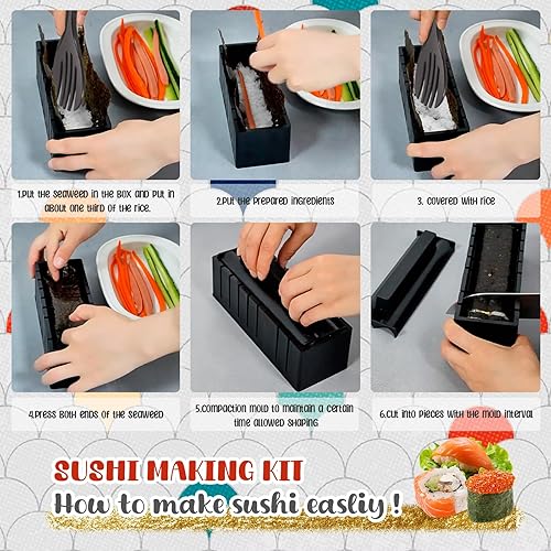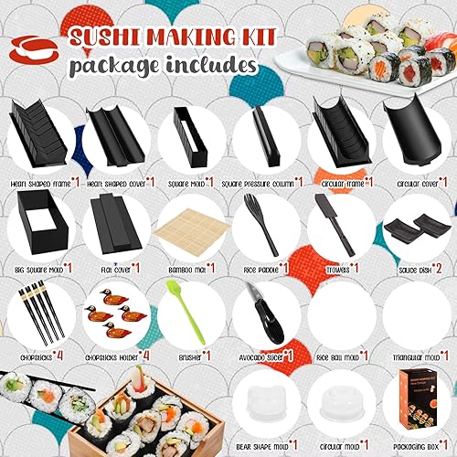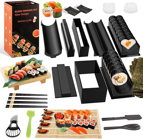USHOP Kit sushi complet,Sushi maker,Appareil pour fabrication sushi,27 Pièces Deluxe Edition Sushi Maker Kit avec Sushi Rice Rolling Forms, Fourchette, Couteau à sushi, Sushi Rolling Mat, Baguettes