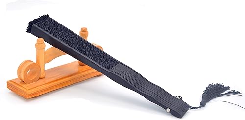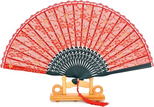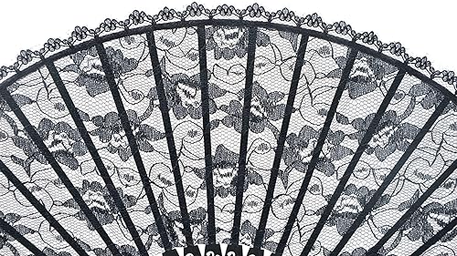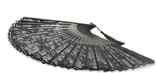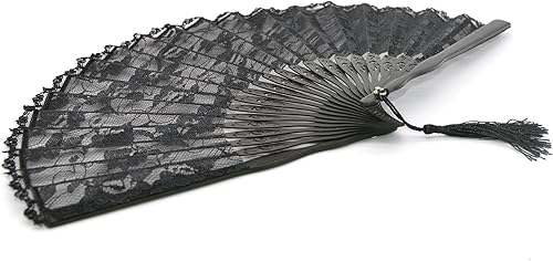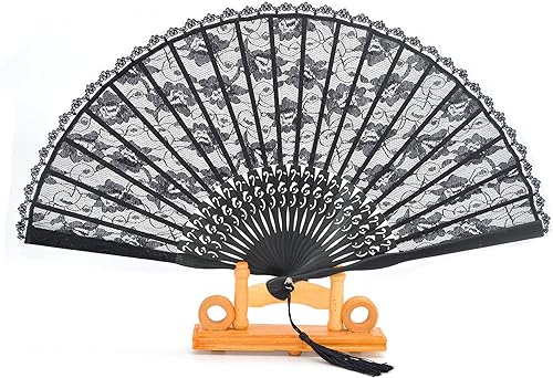 Medifier Éventail pliable en dentelle de bambou avec pochette en soie faite à la main et boîte cadeau, cadeau de fête de mariage pour filles et femmes, noir
