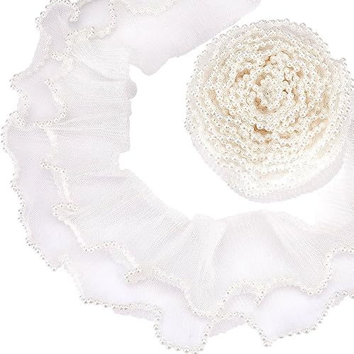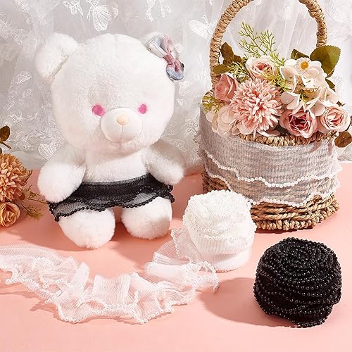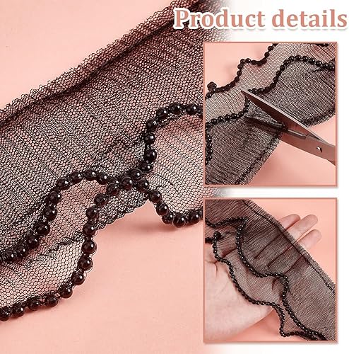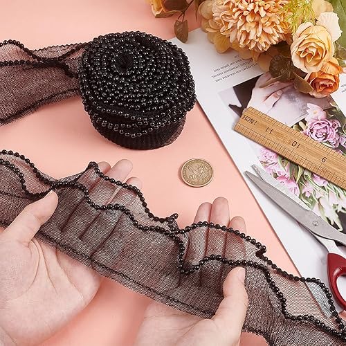 PH PandaHall 3.7m Bordure Plissée à Volants, Ruban en Tissu Élastique 2 couche de 8cm de Large Tissu en Tulle Noir Dentelle Appliquée pour la Coupe la Couture Artisanale les Poignets Décor
