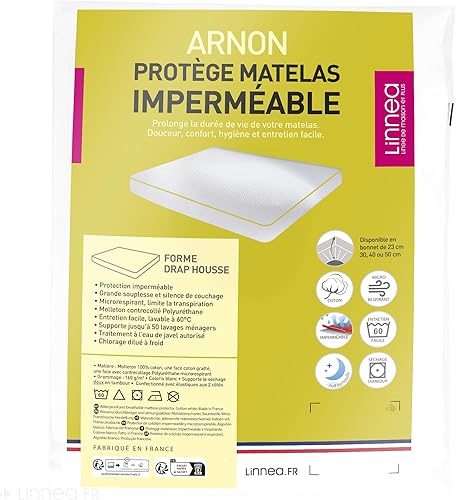 Protège Matelas imperméable 120x200 cm Bonnet 30cm Arnon Molleton 100% Coton contrecollé polyuréthane