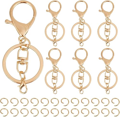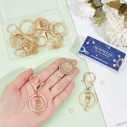 SUNNYCLUE 1 boîte 10 pièces Fermoirs à Pince de Homard Fermoir de Porte-Clés en Fer en Vrac Porte-Clés de Polissage Doré Anneaux de Saut Ouverts Fermés Ensemble de Fermetures Fermoirs de Clé D'Extensi