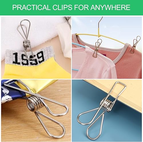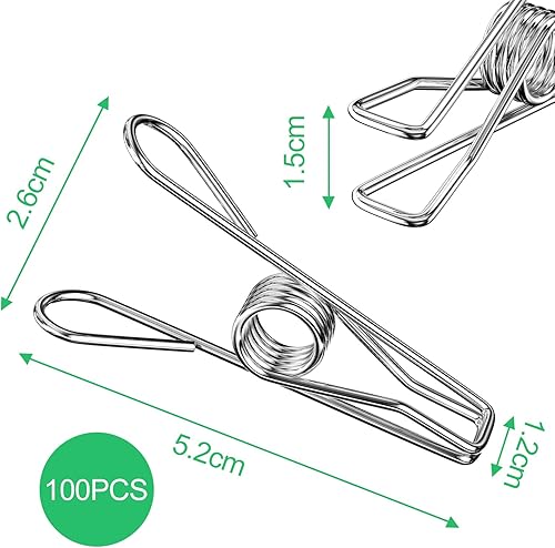 Rseuphiee 100 Pièces Pinces à Linge, Pinces À Linge en Acier Inoxydable, Pince a Linge Exterieur, Pince à Linge Metal, pour Les Serviettes, Vêtements, Chaussettes, Cordes à Linge, Cuisine, Bureau