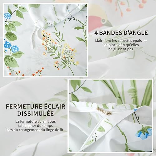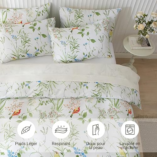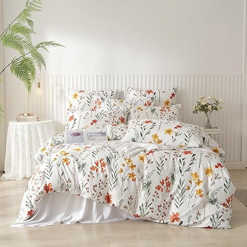 Luowei Parure de Lit 220x240 cm Jaune Orange Fleurie Feuilles Housse de Couette 2 Personnes Adulte Très Doux Housse Couette Imprimée en Microfibre avec Fermeture Éclair et 2 Taies d'oreiller 65x65 cm