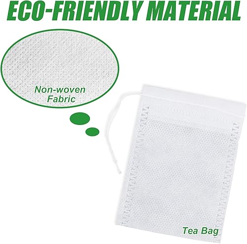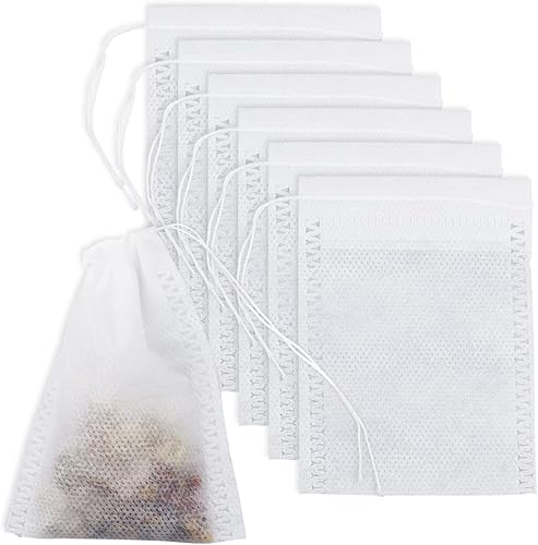 Lot de 100 sachets à thé réutilisables 9 x 7 cm vides avec cordon de serrage, filtre à thé en vrac pour thé et épices