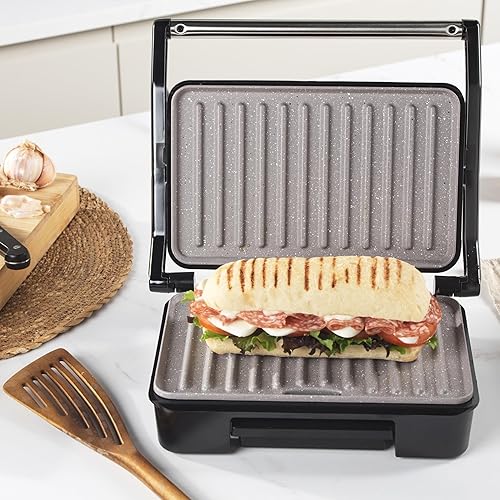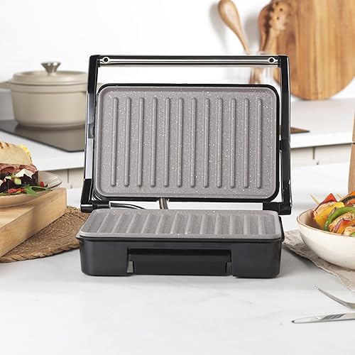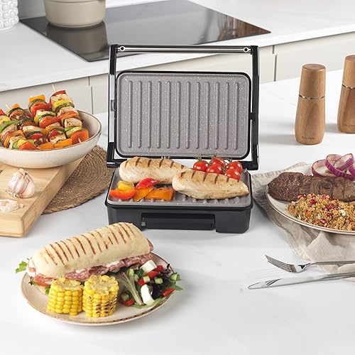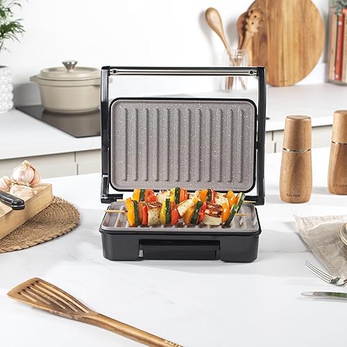 Salter Marblestone, Machine à Paninis Antiadhésive, Cuissom Sans Huile, Charnière Flottante pour Aliments Plus Grands, Contrôle de Température Automatique, Bac d'Égouttage Amovible,Grill Multifonction