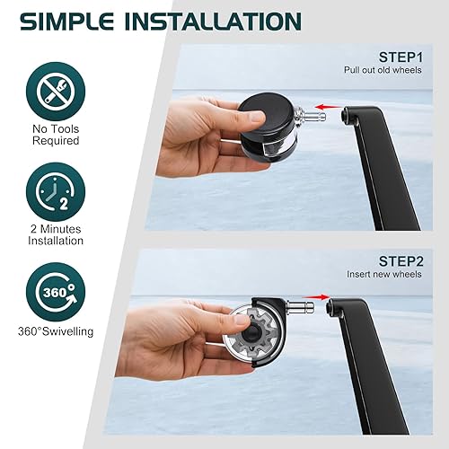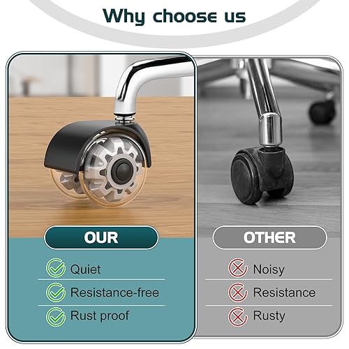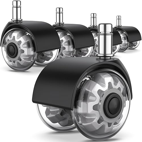 Aevcvok Roulette Chaise Bureau, 10 x 22 mm, 5 PCS Roulette Chaise de Bureau, Roulement Agréable et Silencieux 360° Rotation roues Parfaites pour Tapis, Sols durs, Parquets