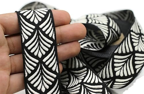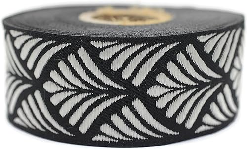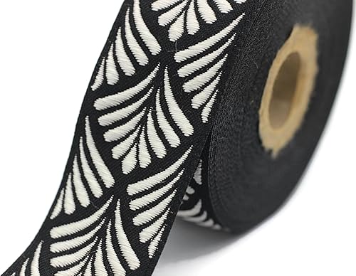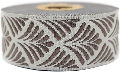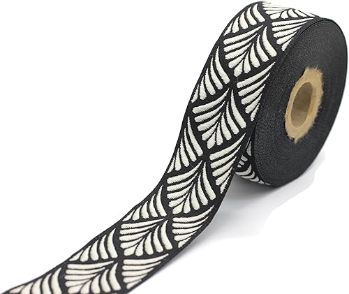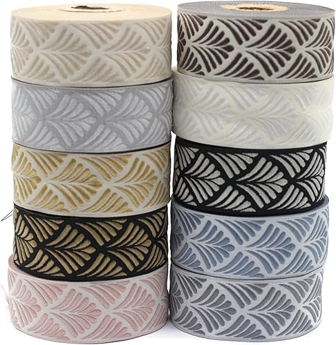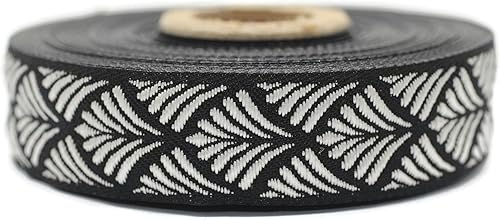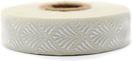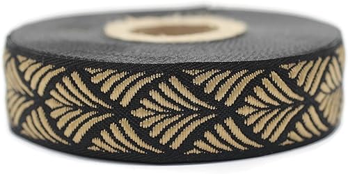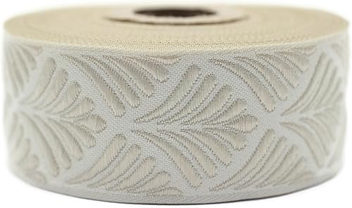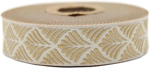 Galon Ruban Jacquard Tisse Jaune et Beige Coquillage 10mt x 20mm - Rouleaux Ruban Brode pour Couture Décoration 20273-V7
