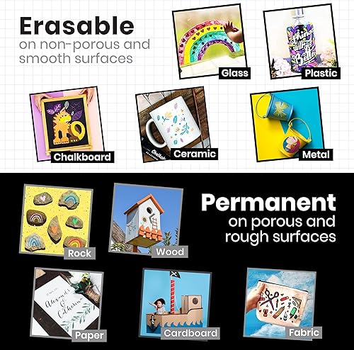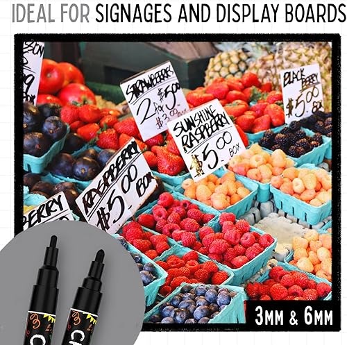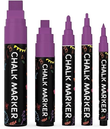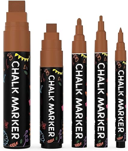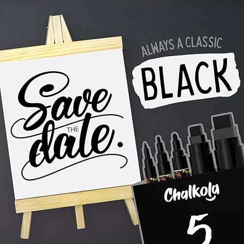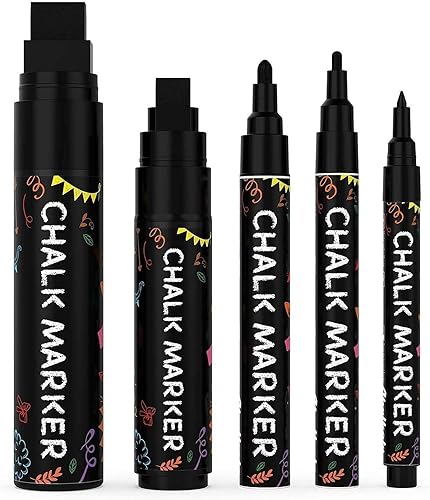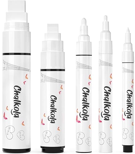 Chalkola Blanc Marqueurs à Craie Lot de 5 Stylos Effaçables à sec Blancs pour Tableau Noir, Toile, Fenêtres, Verre - Pack de Variétés - Pointes Fine et Géante (1mm, 3mm, 6mm, 10mm, 15mm)