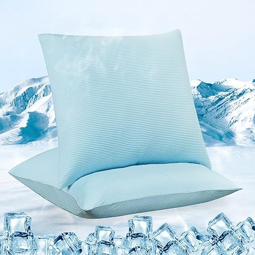 Luxear Lot de 2 Taies d'oreiller Rafraîchissantes Elastiques avec Refroidissement Arc-Chill Respirantes,Housses de Coussin Soyeuses avec Fermeture Eclair, 80 x 80 cm, Gris