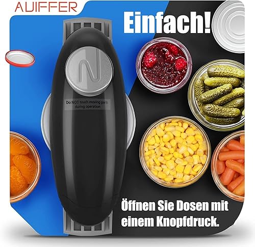 AUIFFER Ouvre-boîte électrique, automatique, One-Touch, Acier inoxydable, Noir
