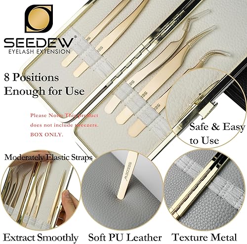 SEEDEW Organiseur de pinces à cils, sac de rangement individuel en cuir synthétique souple, 8 positions, coins arrondis, portable, boîte de rangement individuelle pour pinces, pinceaux de maquillage,