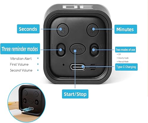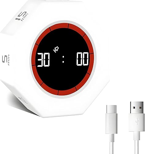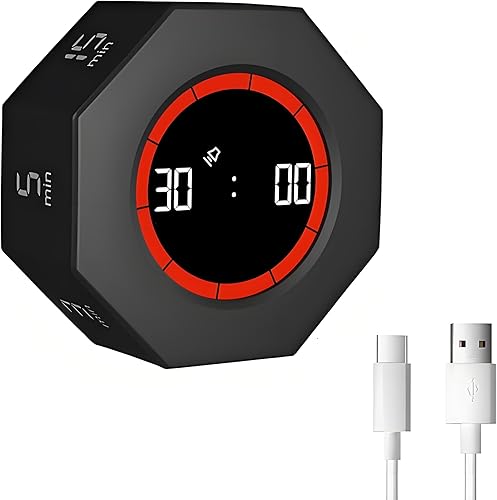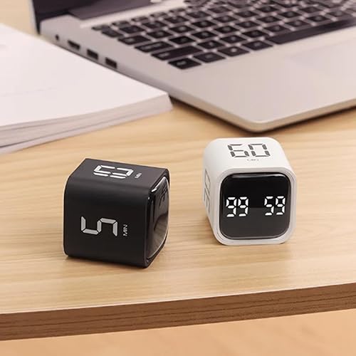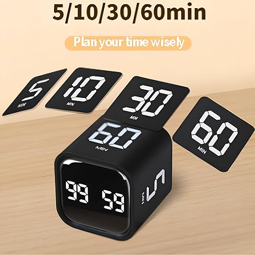 Pomodoro Minuteur visuel numérique Rotatif 5/10/25/50 Minutes Compte minuterie de Cuisine, Alerte sonore réglable pour Cuisiner, Faire du Sport, étudier - Noir