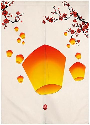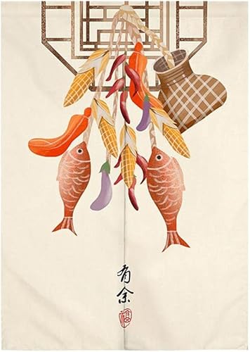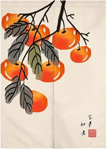 Hiseng Japonais Noren De Rideau de Porte Diviseur Tapisserie Fenêtre Rideaux Panneau, Tenture Décoration pour Chambre à Coucher Cuisine Restaurant Embrasure (Fruit de Kaki,70x120cm)
