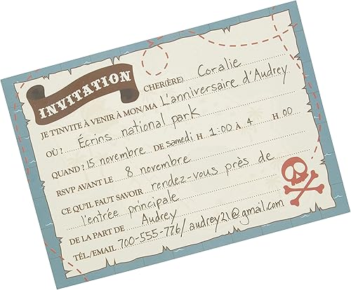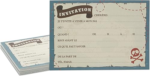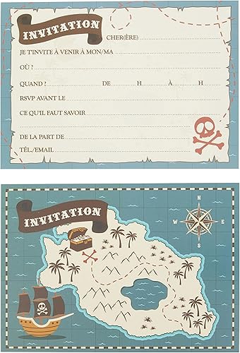 Paper Junkie Paquet de 24 Cartes d'Invitation d'Anniversaire à Remplir sur le Thème des Pirates et Carte au Trésor, Format A6