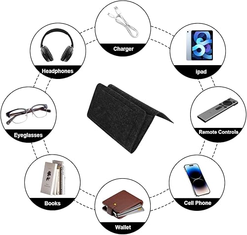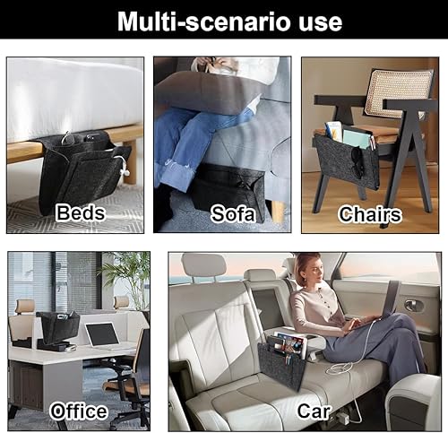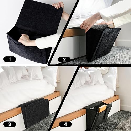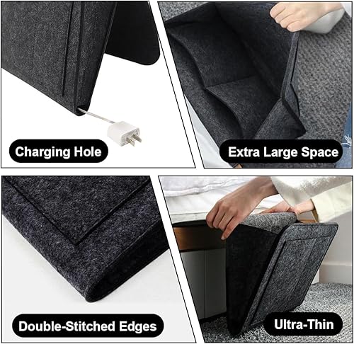 Poche de Lit Caddie de Chevet en Feutre Bedside Pocket Sac de Rangement, 32cm X 22cm Multi-Poches Sac de Rangement de Chevet pour Livres, Magazines, Ipad, Téléphone Portable, Télécommande