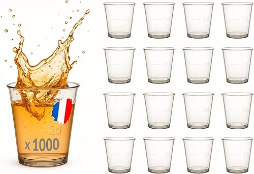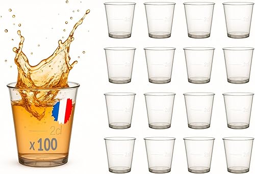 Table'Colors 100 Verres Shooter 6cl - Transparent - Plastique Recyclable - Réutilisable - Solide - Marquage 2cl et 4cl - Idéal Pour Restaurant, Fête, Bar - Fabriqué en France