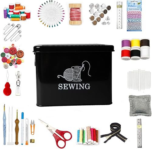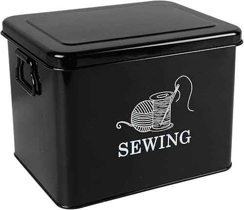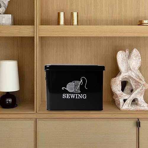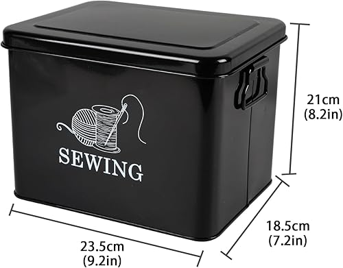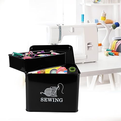 Xbopetda Boîte de rangement en métal pour kit de couture – Panier à couture à 2 niveaux avec plateau amovible, organiseur de fournitures de couture, boîte de rangement pour accessoires de couture,