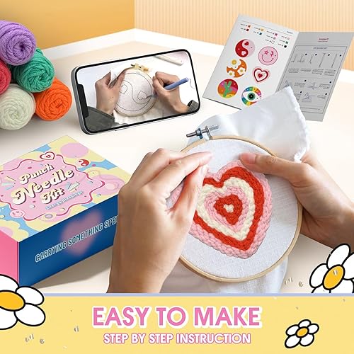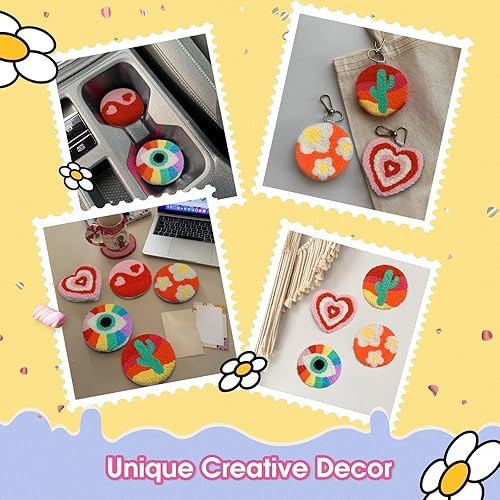 yuegool Kit de 6 sous-verres à aiguilles à poinçonner, kit de broderie facile à faire soi-même pour débutants, adultes et enfants, y compris des motifs de blanchiment d'énergie, des outils, des fils,