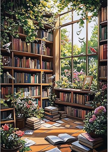 NEWENMO DIY Maison du Livre Diamond Painting Adulte,Librairie Peinture Diamant Kit Complet,Bricolage Fleurs Diamant Painting, Diamond Point de Croix Cristal Painting,pour Murale Maison Décor 30x40cm