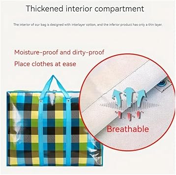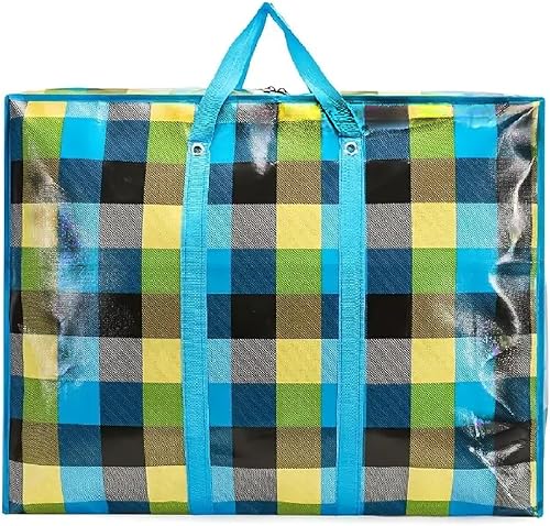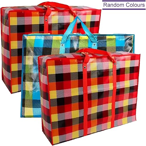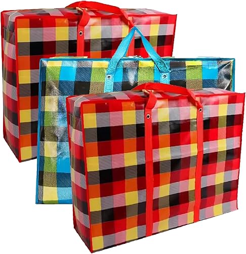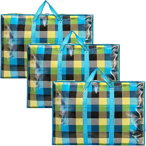 KAV Lot de 3 sacs à linge extra larges – 170 g/m² sacs de rangement imperméables réutilisables avec fermeture éclair et poignée pour voyage, déménagement, plage, emballage de chiffons (90x60x30 cm)