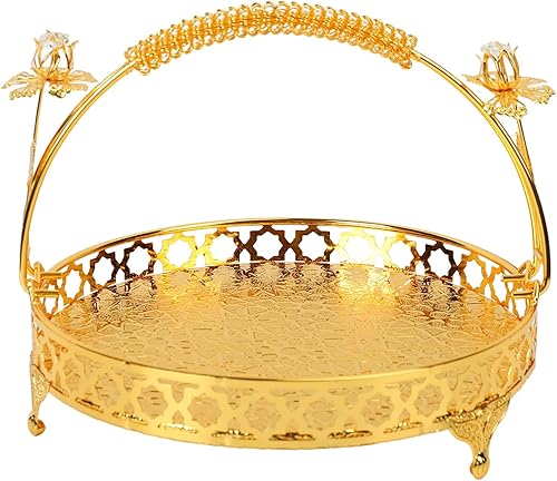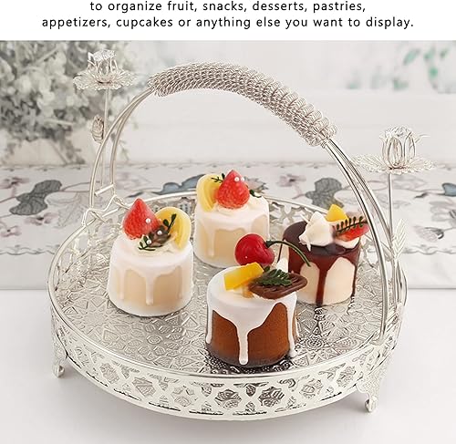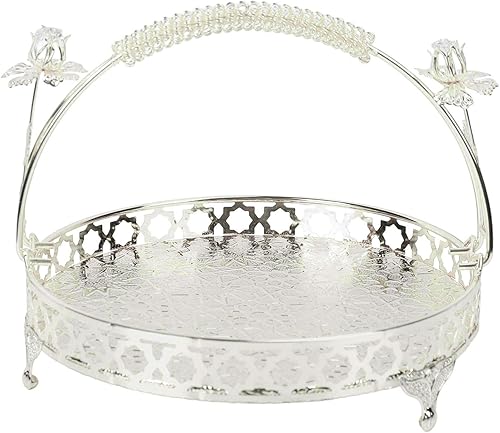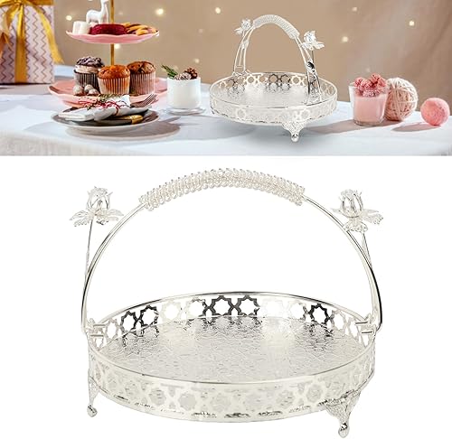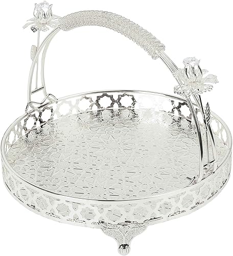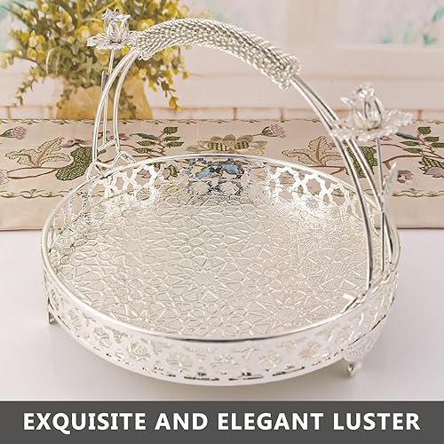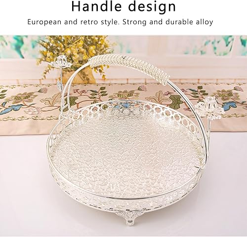 Yuecoom Plateau à Fruits, Bol à Fruits décoratif en Alliage Fort de Conception de poignée Ronde de Grande capacité de Style rétro pour Le café de Famille de fête (Couleur argent taille moyenne)