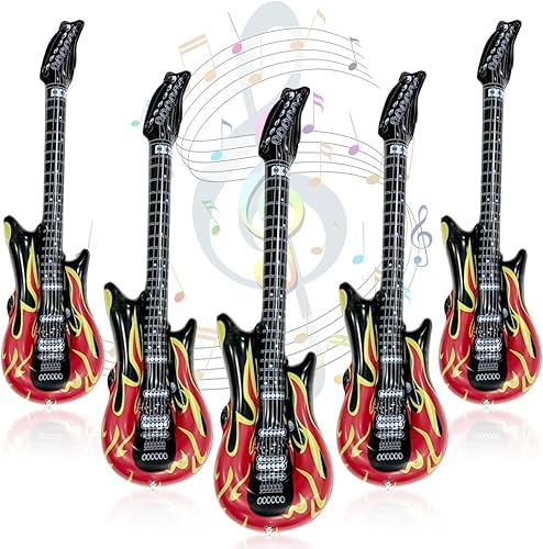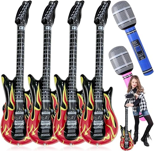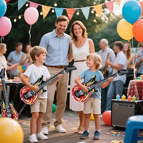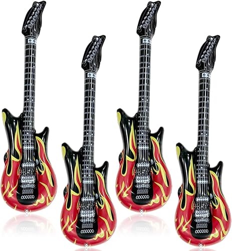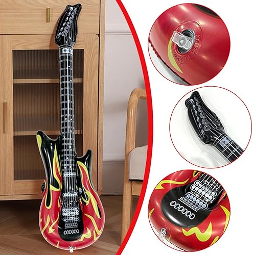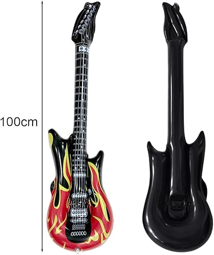 Guitare gonflable, 4 pièces Guitare gonflable rock adulte, 100cm Accessoires de guitare gonflables, instruments gonflables, instrument de musique rock pour fêtes à thème, carnaval, fête d'anniversaire
