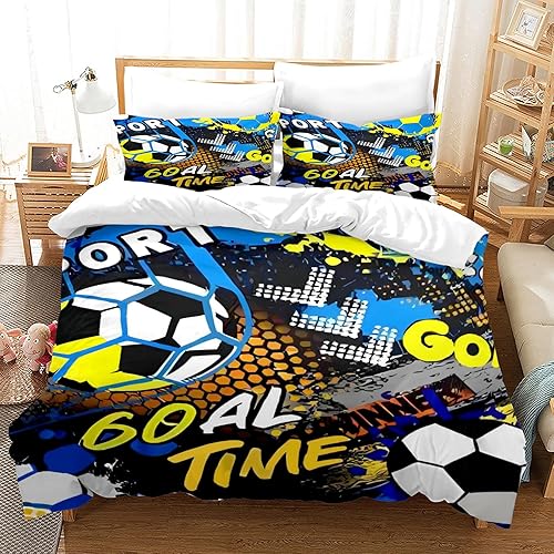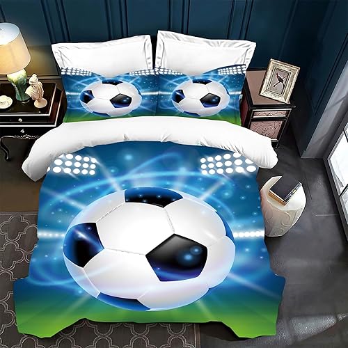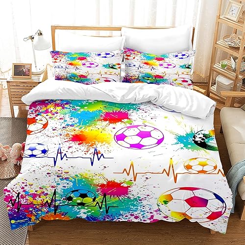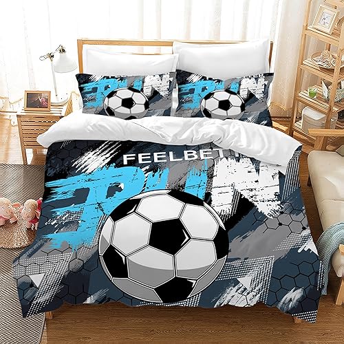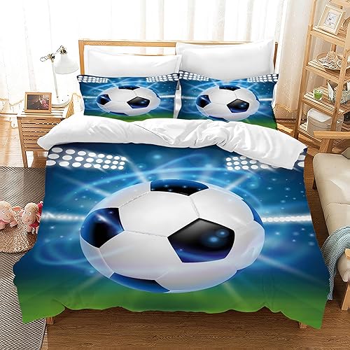Housse de Couette Football Parure de Lit Sport Football Motif pour Enfant 1/2 Personne,Housses de Couettes Microfibre avec Fermeture Éclair et 2 Taies d'oreiller 65x65 cm (Football 02, 140 x 200 cm)