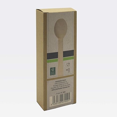Ökolution Lot de 25 cuillères en Bois jetables recouvertes de Cire de Carnauba, certifiées FSC, dans Un Emballage écologique
