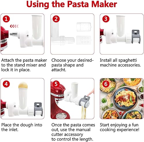 Attachement Pour Pâtes Compatible Avec le Batteur sur Socle Kitchen Aid, 6 Formes de Pâtes, 6 en 1 Attachement pour Nouilles