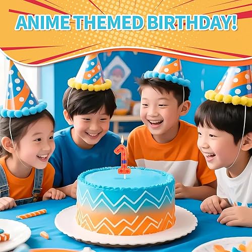 SAVITA Bougie d'Anniversaire Thème Anime, Bougie Chiffre pour Gâteau avec Ceinture Orange et Bleue et Décoration de Cupcake pour Fête Dessin Animé (6)