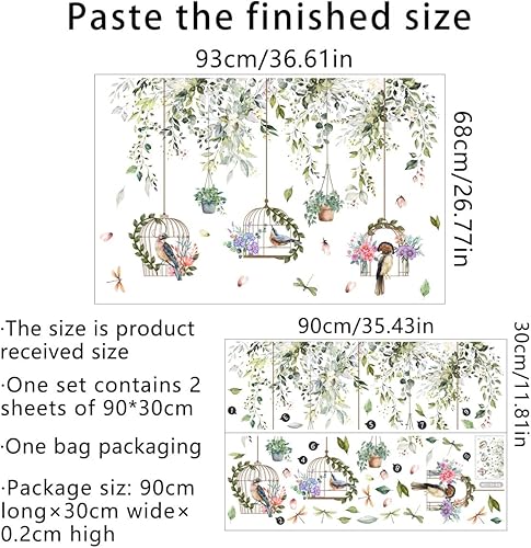 Runtoo Stickers Muraux Fleurs et Oiseaux Autocollant Mural Plantes Feuilles Vertes Deco Stickers Salle de Bain Salon Chambre Enfants Bébé Décoration