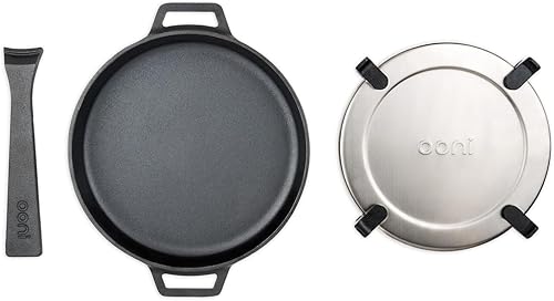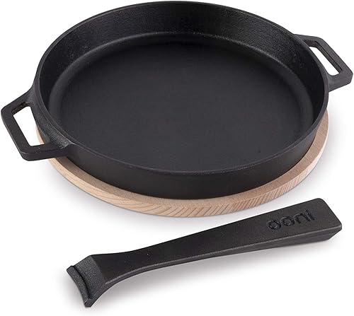 Ooni poêle en fonte allant au four 25cm – Poêle fonte naturelle ronde – Poêle manche amovible – Poêle avec planche en acier inoxydable – Poêle pour four à pizza