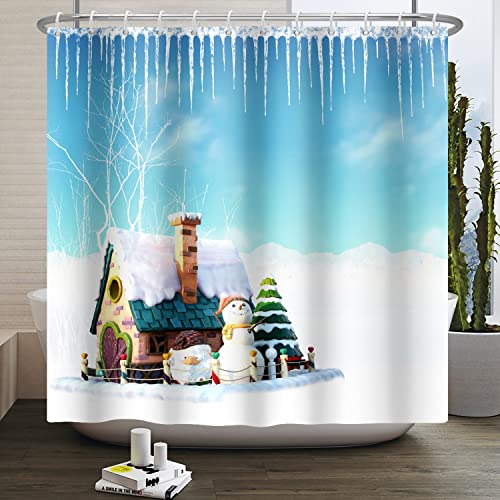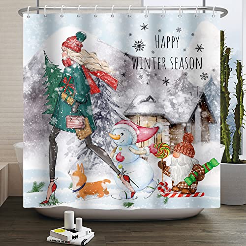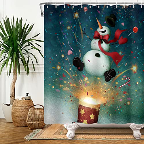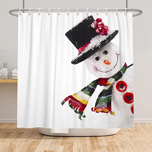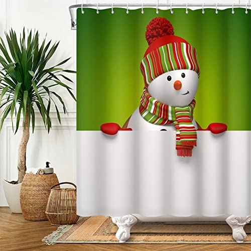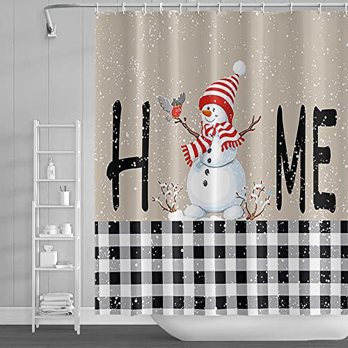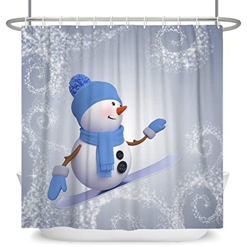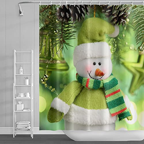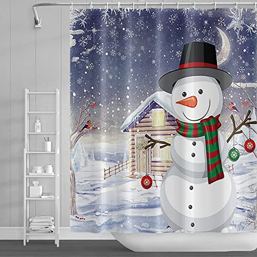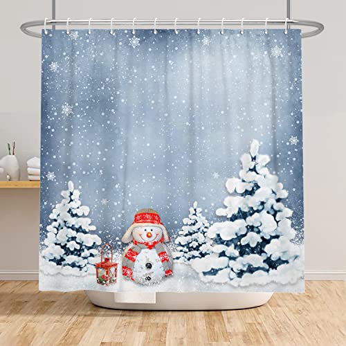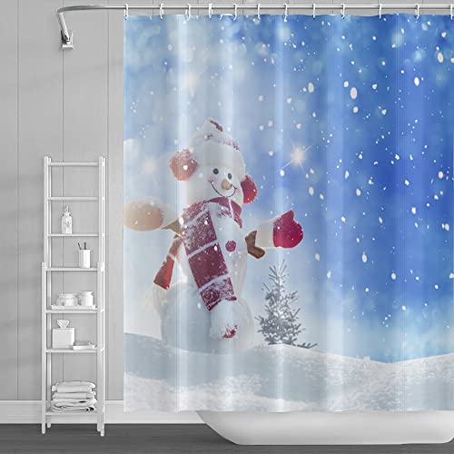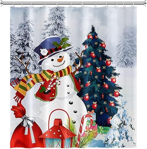 SDOTPMT 105x160cm Joyeux noël Rideau de Douche l'hiver Drôle Mignon Bonhomme de Neige Noël Arbre Balle Rideau de Bain Flocon de Neige Rideau de Baignoire pour Salle Bains Polyester avec Crochets