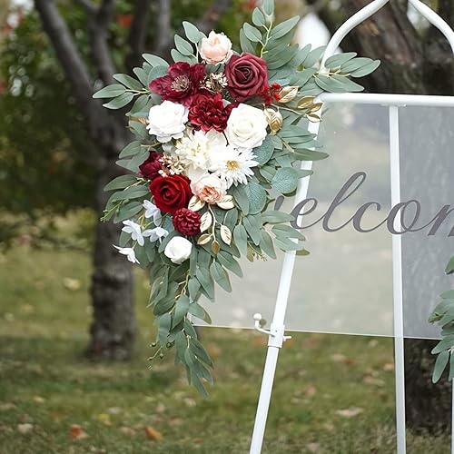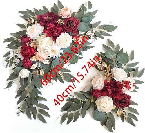 AQCQDQ Lot de 2 fleurs artificielles pour arche de mariage - Guirlande de fleurs de mariage - Guirlandes en soie - Pivoine - Panneau de bienvenue (rose)