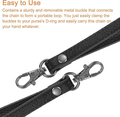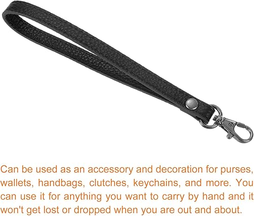 QUARKZMAN Sangle de Poignet en Cuir, 190mm/7,48' Lanière de Poignet en Cuir de Remplacement pour Portefeuille, Sac à Clés, Bricolage (Noir, Noir)