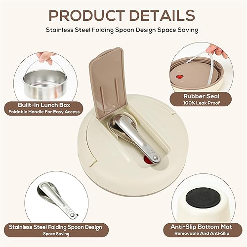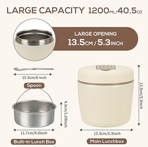 Cozary Thermos Alimentaire Chaud 1200ml, Boîte Alimentaire Isotherme,Acier Inoxydable 304 Boite Isotherme Repas Chaud avec Cuillère,sans BPA, pour Ecole, Bureau, Camping