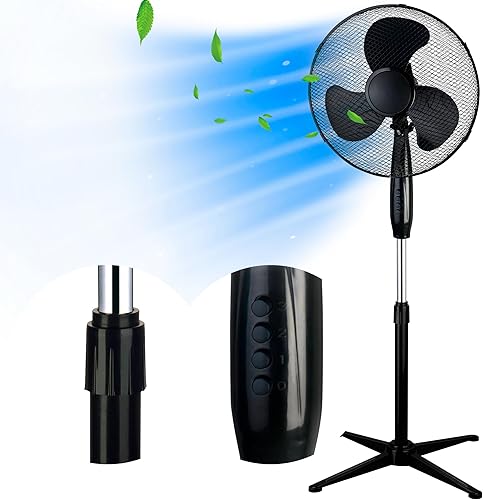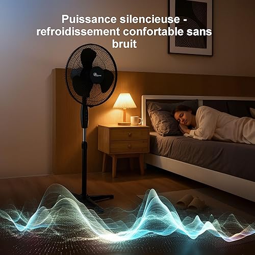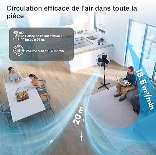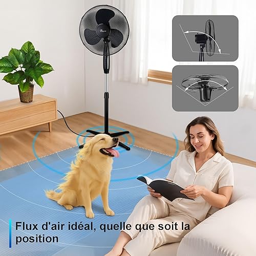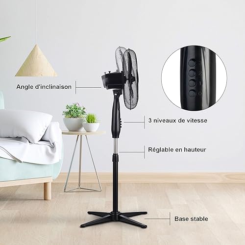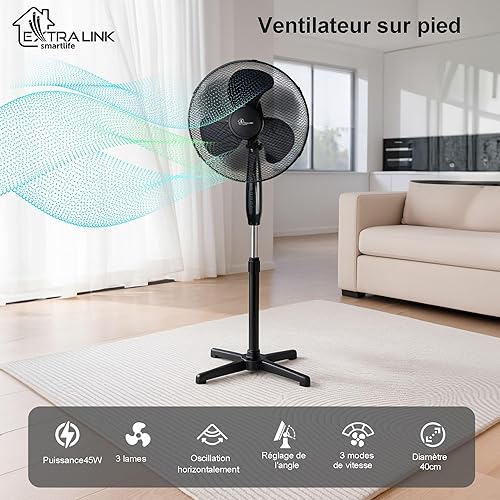 EXTRALINK Ventilateur sur pied 45W Ø40 cm – 3 vitesses, fan avec oscillation horizontale, inclinaison et hauteur réglables – design blanc moderne pour chambre, salon, bureau, maison